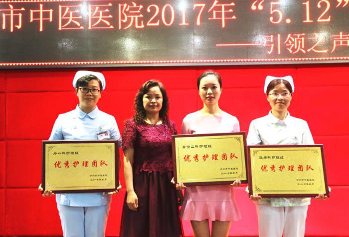 表演結(jié)束后,大會對2016年度優(yōu)秀護(hù)理學(xué)術(shù)團(tuán)隊(duì)、優(yōu)秀護(hù)理質(zhì)量管理小組以及優(yōu)秀護(hù)士、優(yōu)秀帶教老師、優(yōu)秀規(guī)培護(hù)士進(jìn)行了表彰,醫(yī)院黨委副書記王萬芳、護(hù)理部主任袁紅、服務(wù)質(zhì)量管理辦公室主任彭閨臣及資深護(hù)士長為獲獎?wù)哳C獎。頒獎儀式上,身穿制服的“白衣天使”分批走上頒獎臺,捧回屬于自己的榮譽(yù)。一張張相片記錄下這難忘的瞬間,紀(jì)念5.12國際護(hù)士節(jié)表彰大會圓滿落下帷幕。