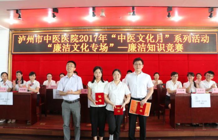 為進(jìn)一步加強(qiáng)醫(yī)院黨風(fēng)廉潔建設(shè)和醫(yī)德醫(yī)風(fēng)建設(shè),2017年5月27日下午,瀘州市中醫(yī)醫(yī)院在門診11樓學(xué)術(shù)廳開展 “中醫(yī)文化月”系列活動(dòng):“廉潔文化專場”——廉潔知識(shí)競賽,市衛(wèi)生計(jì)生委監(jiān)察室主任稅昌海到場指導(dǎo)。醫(yī)院全體中層以上領(lǐng)導(dǎo)干部、全體黨員參加了此次活動(dòng)。