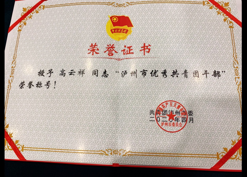 此外,瀘州市中醫(yī)院派駐瀘州市傳染病醫(yī)院設(shè)備科職工、行政后勤第一團(tuán)支部書記高云祥也喜獲“2019年度瀘州市優(yōu)秀共青團(tuán)干部”。