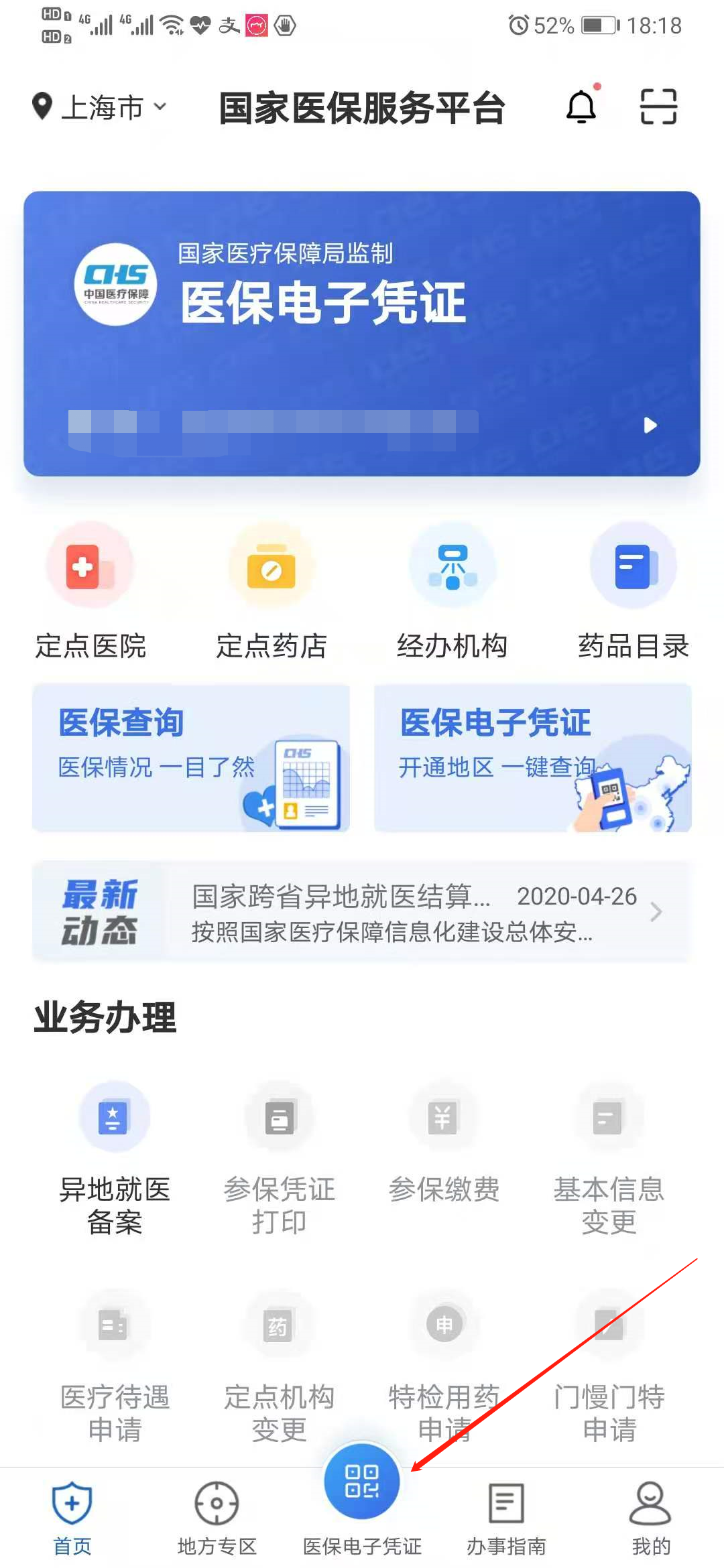 進入國家醫(yī)保服務平臺APP首頁,需要首先登錄個人醫(yī)保電子憑證。
