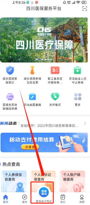 ●第一步:點(diǎn)擊APP首頁屏幕最下方【醫(yī)保電子憑證】;