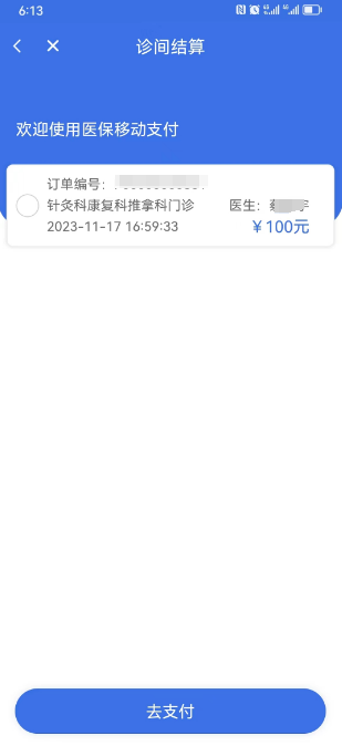 注意:初次移動(dòng)支付需要綁定相應(yīng)銀行卡,用于支付醫(yī)保基金和個(gè)人賬戶以外的現(xiàn)金部分。