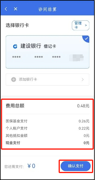 第四步點(diǎn)擊確認(rèn)支付,即可完成醫(yī)保統(tǒng)籌在線結(jié)算。