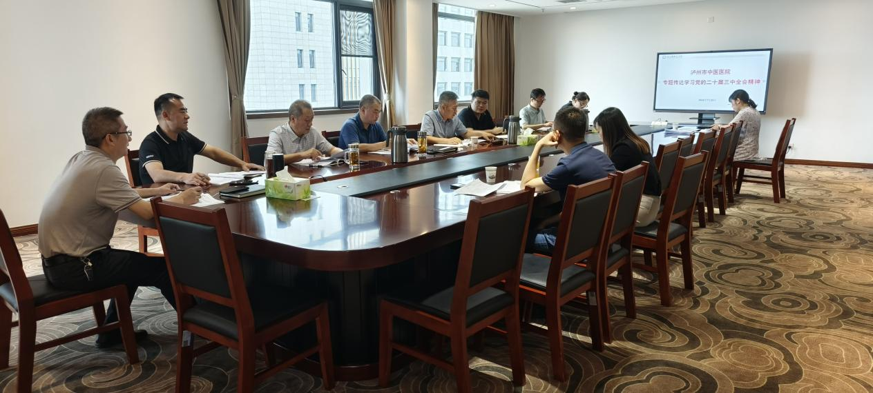 7月25日,瀘州市中醫(yī)醫(yī)院召開黨委會(huì)議,專題傳達(dá)學(xué)習(xí)黨的二十屆三中全會(huì)精神。醫(yī)院黨委書記鄭海三主持會(huì)議并講話,黨委副書記、工會(huì)主席李定軍領(lǐng)學(xué)全會(huì)公報(bào)、《中共中央關(guān)于進(jìn)一步全面深化改革、推進(jìn)中國式現(xiàn)代化的決定》及習(xí)近平總書記關(guān)于《決定》的說明等內(nèi)容,醫(yī)院副院長(zhǎng)何進(jìn)、黨委辦公室負(fù)責(zé)人李秋容、行政辦公室主任周鳴列席會(huì)議。