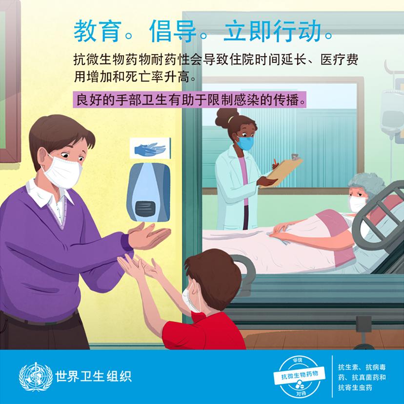 “世界提高抗微生物藥物認(rèn)識周”是一項(xiàng)全球性運(yùn)動(dòng),每年舉辦一次,旨在提高公眾對抗微生物藥物耐藥性的認(rèn)識和了解,鼓勵(lì)公眾、“同一健康”利益攸關(guān)方以及在減少抗微生物藥物耐藥性的進(jìn)一步出現(xiàn)和傳播方面發(fā)揮關(guān)鍵作用的決策者采取最佳做法。
