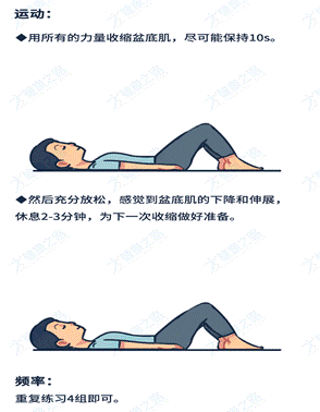 4.盆底肌訓(xùn)練:盆底肌訓(xùn)練又稱凱格爾運(yùn)動,是壓力性尿失禁的一線治療方法。排尿后躺平,雙腿彎曲,呼吸平穩(wěn)放松,持續(xù)收縮盆底肌 5-10 秒,然后放松肌肉,停留數(shù)秒,如此收縮放松反復(fù) 10 次為一組,每天訓(xùn)練 3-4 組,約 15 分鐘,每周 3-5 次,持續(xù) 2 個月或更長時間。
