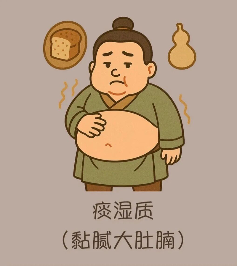 體質(zhì)概述:痰濕體質(zhì)多由各種因素致水液內(nèi)停、痰濕凝聚而成;以形體肥滿、口黏苔膩為主要特征。痰濕體質(zhì)者多體形肥胖,腹部肥滿松軟;面部皮膚油脂較多,多汗且黏,胸悶,痰多,口黏膩或甜,喜食肥甘甜黏,苔膩,脈滑。此類人群性格多偏溫和、穩(wěn)重、擅于忍耐。易患消渴、中風、胸痹等。對梅雨季節(jié)及濕重環(huán)境適應能力差?!岸?..