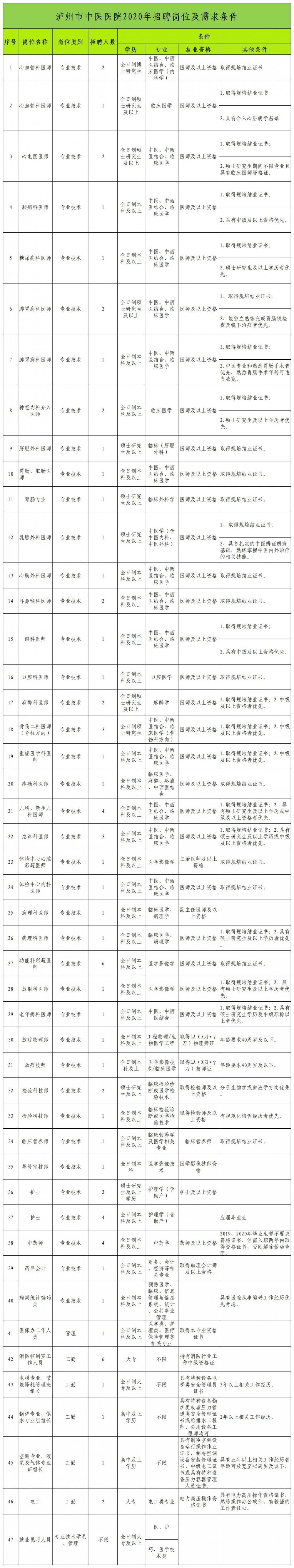 • 瀘州市中醫(yī)醫(yī)院2020年第四季度招聘公告