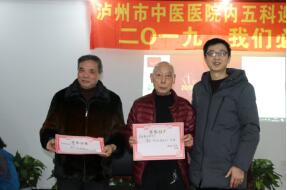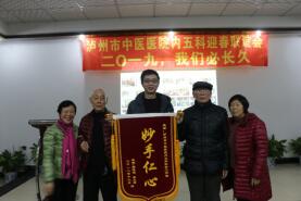 活動(dòng)現(xiàn)場(chǎng),市中醫(yī)院收到了一面特殊的錦旗,說它特殊,是因?yàn)檫@是“老”病友郭道富與病友李正均及其雙方家屬一起送的。 兩年前,76歲的郭大爺因患結(jié)腸癌來到了市中醫(yī)院內(nèi)五科治療。兩年來,通過市中醫(yī)院的專業(yè)與愛心以及自己的積極配合和妻子的精心護(hù)理,郭大爺?shù)牟∏榈玫搅撕芎玫目刂?,體重也由原來的104斤漲到了116斤。今年已經(jīng)是郭大爺和妻子彭渝貞連續(xù)三屆參加內(nèi)五科組織的迎春茶話會(huì)活動(dòng)了。每一屆活動(dòng)現(xiàn)場(chǎng),郭大爺和愛人都主動(dòng)向病友們分享自己的抗癌“四項(xiàng)基本原則”,目的就是要鼓勵(lì)新老病友要相信科學(xué),相信醫(yī)生,積極治療。和郭大爺同一單位的李正均正是在郭大爺?shù)墓膭?lì)下,來到市中醫(yī)院治療并得到了好轉(zhuǎn)。