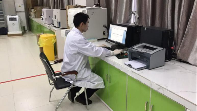 張幫林幫助受援單位調(diào)試機器中