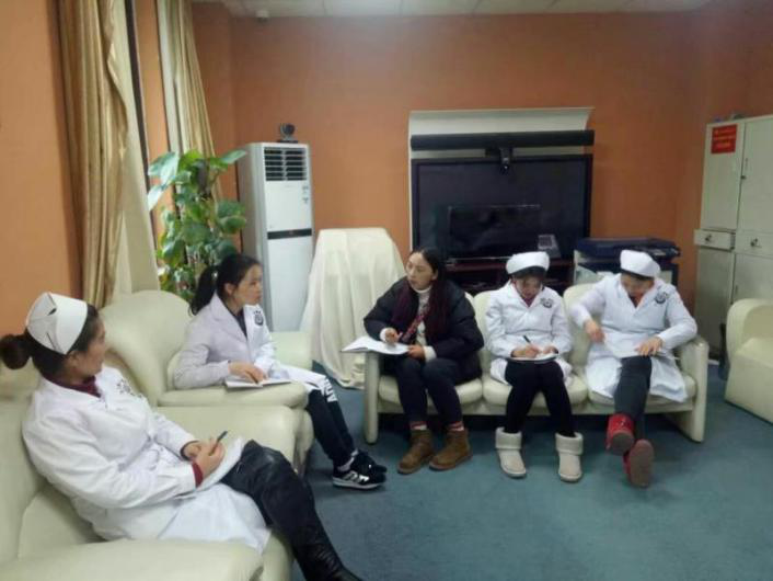 賀霞(左二)召開護(hù)理部中層干部會(huì)議