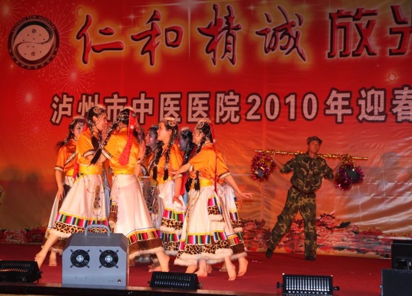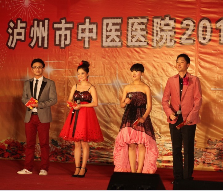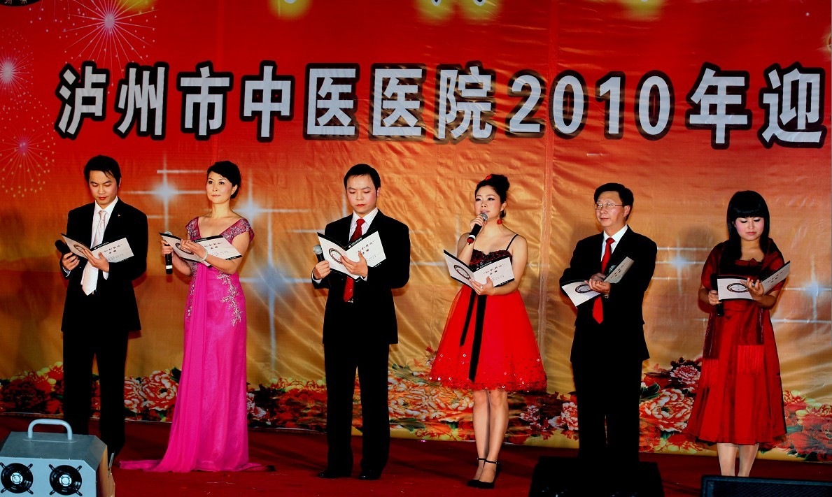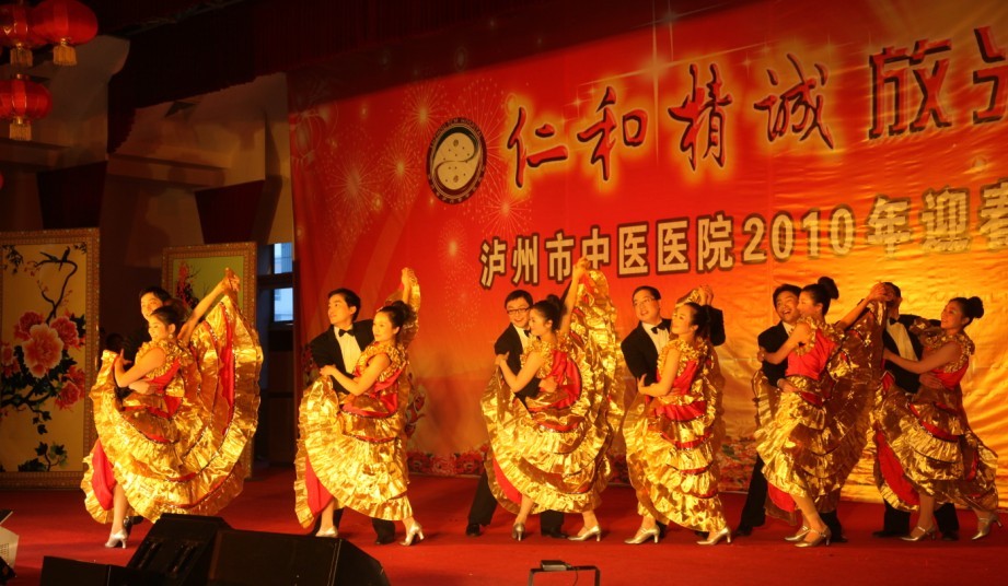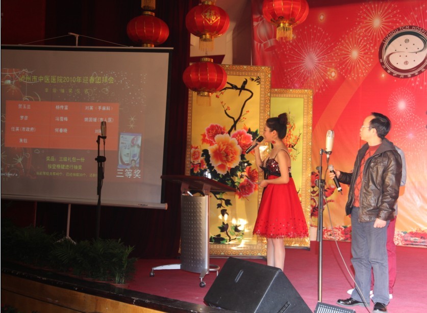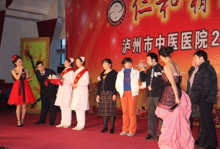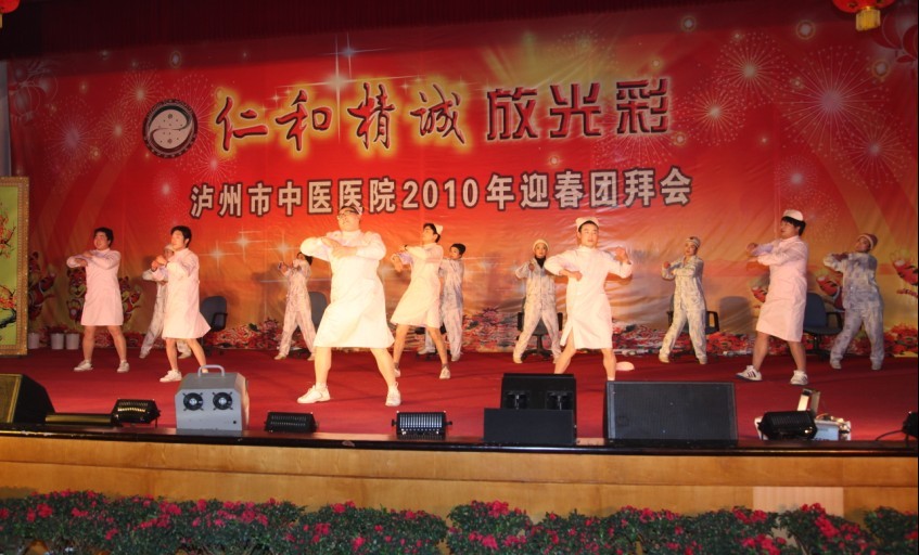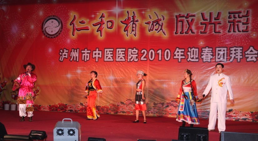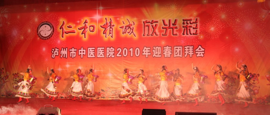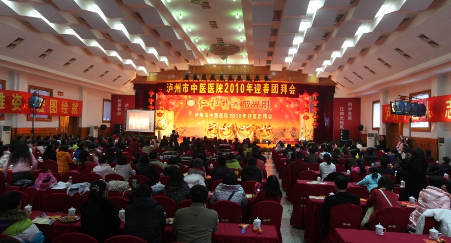 歡聲笑語沖云霄,相親相愛一家人。2010年1月26日下午, 我院全體員工歡聚一堂,在瀘州市南苑會議中心舉辦了2010年迎春團拜會。瀘州市市委常委、副市長石海龍,市政府副秘書長任英,市衛(wèi)生局局長康江等領(lǐng)導以及兄弟單位的領(lǐng)導親臨團拜會,觀看了這場醫(yī)院精心策劃、巧妙構(gòu)思、內(nèi)涵豐富的盛大視覺盛宴。