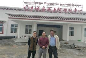 謝鍵(中)與鄉(xiāng)城藏醫(yī)院阿麥院長(右)檢查制劑大樓修建情況