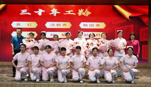 本次活動(dòng)中,醫(yī)院骨科帶來了“基于中醫(yī)調(diào)護(hù)在護(hù)士睡眠管理中的運(yùn)用”品管圈展示,護(hù)理急救團(tuán)隊(duì)展示了為創(chuàng)傷患者的現(xiàn)場(chǎng)急救處理,為9位擁有30年及以上護(hù)齡的護(hù)士頒發(fā)了榮譽(yù)獎(jiǎng)?wù)滤蜕狭缩r花,表揚(yáng)了一批先進(jìn)集體和先進(jìn)個(gè)人。