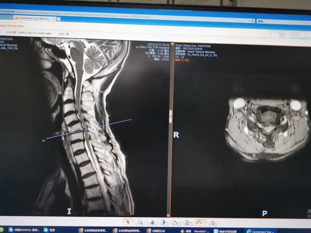 原來,楊先生無明顯誘因的出現(xiàn)頸肩部、腰部疼痛,在當?shù)蒯t(yī)院住院治療后癥狀稍緩解,隨后疼痛癥狀又加重,并反復發(fā)作。近日,楊先生狀況已是下地行走困難,還伴四肢疼痛、麻木、無力等,為求進一步治療,楊先生來到瀘州市中醫(yī)醫(yī)院就診。經檢查,楊先生是患了脊髓性頸椎病加腰椎管狹窄癥。