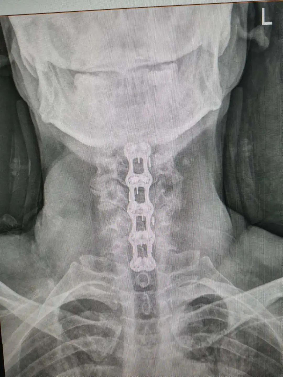 由于楊先生的病情嚴重,需住院治療。楊先生入院后,瀘州市中醫(yī)醫(yī)院骨傷二科科主任楊陳一制定了手術計劃,決定脊髓型頸椎病的手術從前路切開減壓,頸3/4 、頸4/5、 頸5/6、 頸6/7椎間盤切除,椎間融合,鋼板內固定術手術,而腰椎管狹窄癥經后路切開減壓,腰3/4、腰4/5椎同盤動除,椎間融合、釘棒系統(tǒng)內固定術。