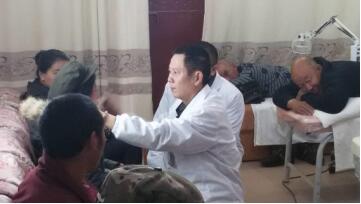 他是年齡最大的援藏人員,年逾半百三赴川西高原,對(duì)口支援四川甘孜藏族自治州西南邊陲的鄉(xiāng)城縣。在前后四年半的時(shí)間里,他牢記“援藏一期、造福一方”的神圣使命,以精湛的針灸、理療技術(shù),為當(dāng)?shù)財(cái)?shù)萬(wàn)名群眾解除疾苦,改善農(nóng)牧區(qū)醫(yī)療條件,被藏民親切地稱(chēng)為“門(mén)巴雅古”(藏語(yǔ):好醫(yī)生)。應(yīng)當(dāng)?shù)卣蛷V大群眾的強(qiáng)烈呼聲,他一次次折返于這片神秘美麗的雪域圣地,留下了片片“針”情。