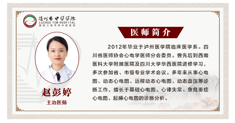 瀘州市中醫(yī)醫(yī)院心電圖室(大山坪院區(qū)地址:門診4樓,城南院區(qū)地址:門診2樓)是一個(gè)經(jīng)驗(yàn)豐富,技術(shù)精湛,設(shè)備先進(jìn)的醫(yī)技科室。能夠?yàn)榕R床提供真實(shí)、實(shí)用、可信、的診斷依據(jù)。