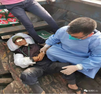 (金玉峰乘坐40多分鐘簡陋接駁木船接回斷肢的中國籍船員)