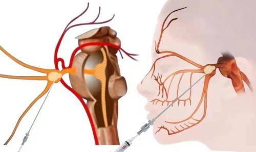 經(jīng)過面部口角處將射頻針穿刺到三叉神經(jīng)半月節(jié)內(nèi),通過射頻針發(fā)熱,選擇性毀損單支感覺神經(jīng),保留運動神經(jīng),達到止痛目的,術(shù)后面部稍麻木。