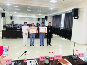 頒獎現場:我院護工楊福連(左二)、袁成芬(左三)榮獲一等獎