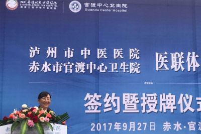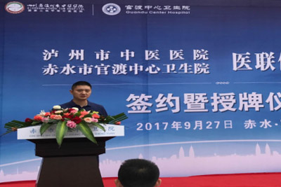9月27日,赤水市官渡鎮(zhèn)中心衛(wèi)生院與瀘州市中醫(yī)醫(yī)院牽手成功,結(jié)成對(duì)子,正式掛牌瀘州市中醫(yī)醫(yī)院醫(yī)聯(lián)體專(zhuān)科聯(lián)盟醫(yī)院。牽手后,官渡鎮(zhèn)居民在家就能享受到來(lái)自國(guó)家三級(jí)甲等中醫(yī)醫(yī)院的診療服務(wù)。