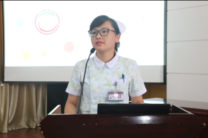 這位是我院骨傷二科的一位年輕護師劉佳琳。別看年紀(jì)輕,品管圈十大步驟講解得全面細致,深入淺出,通俗易懂,讓大家了解了品管圈的定義、目標(biāo)設(shè)定、對策擬定、效果確認等知識。