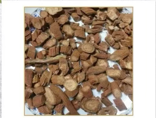 相較于正品丹參,表皮灰棕色,切面皮部紅棕色,切面有多數(shù)導(dǎo)管孔
