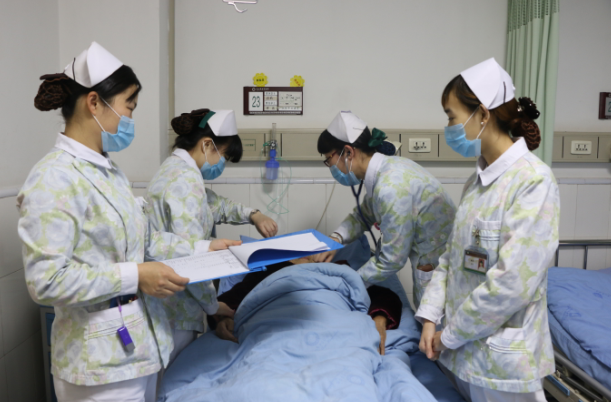 查房前半小時(shí),心血管病科主管護(hù)師廖春梅帶領(lǐng)各專科的護(hù)理教學(xué)組長進(jìn)行了規(guī)范的床旁護(hù)理查體,應(yīng)用望、觸、叩、聽、嗅等體格檢查技術(shù)對(duì)患者的生命體征及各個(gè)系統(tǒng)進(jìn)行檢查,對(duì)前一階段的護(hù)理效果進(jìn)行了評(píng)價(jià),發(fā)現(xiàn)患者目前存在的護(hù)理問題。