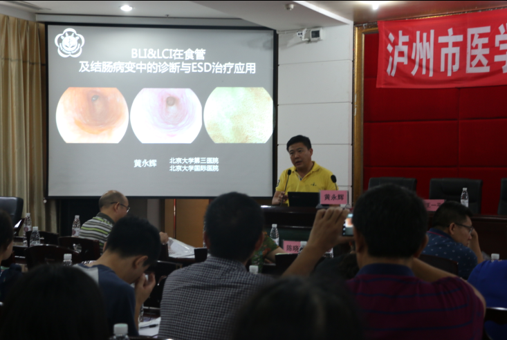 開幕式后,北京大學(xué)第三醫(yī)院消化科副主任黃永輝教授,復(fù)旦大學(xué)附屬中山醫(yī)院消化內(nèi)科張順財(cái)教授,四川大學(xué)華西醫(yī)院消化內(nèi)科楊麗教授,西南醫(yī)科大學(xué)附屬醫(yī)院消化內(nèi)科主任鄧明明教授,我院脾胃病科主任、副主任醫(yī)師李榮軍等北京、上海、省內(nèi)專家分別作了題為《BLI&LCI在食管及結(jié)腸病變中的診斷與ESD治療應(yīng)用》、《膽汁郁積機(jī)制及治療》、《肝硬化食管靜脈曲張治療策略》、《2015 PUB指南共識(shí)解讀及臨床實(shí)踐》、《消化道早癌診治技術(shù)成長(zhǎng)過(guò)程的個(gè)人體會(huì)》等講座。各位專家結(jié)合典型病例深入淺出地進(jìn)行講解,授課內(nèi)容緊跟本學(xué)科前沿,觀點(diǎn)鮮明、啟發(fā)性強(qiáng),新穎實(shí)用,贏得陣陣熱烈的掌聲。講座結(jié)束后,專家們還與參會(huì)人員進(jìn)行了互動(dòng)交流,并為其答疑解惑。