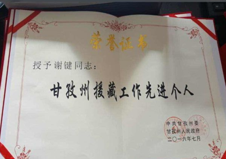 謝鍵獲甘孜州援藏工作先進個人稱號