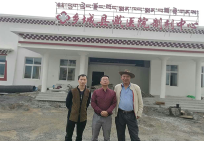 ?? 謝鍵(中)與鄉(xiāng)城藏醫(yī)院阿麥院長(右)檢查制劑大樓修建情況