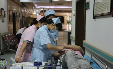 ??????????????? 急診科護(hù)士仔細(xì)地為急診患者扎針輸液