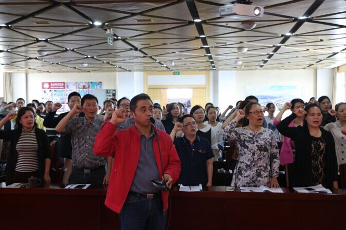 活動(dòng)中,我院黨委副書記王萬芳發(fā)表講話,要求全體黨員對(duì)照入黨志愿談理想、談信念,對(duì)照入黨誓詞找標(biāo)準(zhǔn)、找差距,進(jìn)一步明確做合格黨員的標(biāo)準(zhǔn)要求。隨后,全體黨員在老黨員、我院黨委委員鄒錦平同志的帶領(lǐng)下,面對(duì)鮮紅的黨旗,鄭重地舉起右拳,重溫入黨誓詞,莊嚴(yán)地宣誓。