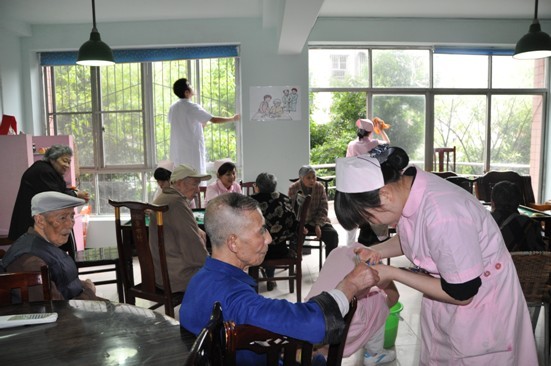 ???? 5月14日下午,護理部號召全院護士利用休息時間到南苑社區(qū)老人院敬獻(xiàn)了愛心。護士們拉著老人的手噓寒問暖,并為40多位老人進行了生活護理,洗頭、修剪指甲、按摩等。同時針對老年人?;嫉穆圆∮枰灾v解和指導(dǎo),強化了老人的基本健康意識。接著他們挽起衣袖,打掃了公寓的清潔衛(wèi)生。此為醫(yī)院慶?!?.12”...