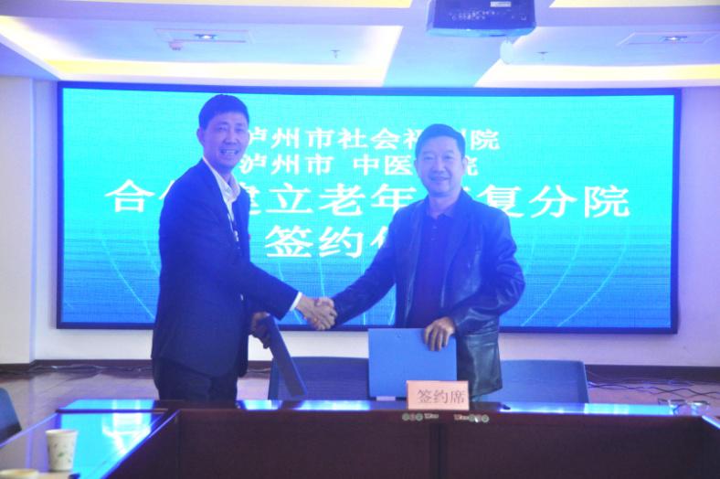 ——我院與瀘州市社會(huì)福利院正式簽訂合作建立老年病科(老年康復(fù)分院)協(xié)議?2017年10月19日下午,我院與瀘州市社會(huì)福利院正式簽訂合作建立老年病科(老年康復(fù)分院)協(xié)議,打造全市首個(gè)“醫(yī)養(yǎng)結(jié)合型醫(yī)院”,解決了曾困擾多年的“醫(yī)院不能養(yǎng),養(yǎng)老院不能醫(yī)”的難題。?簽約儀式現(xiàn)場?據(jù)市我院老年病科(老年康復(fù)分院...
