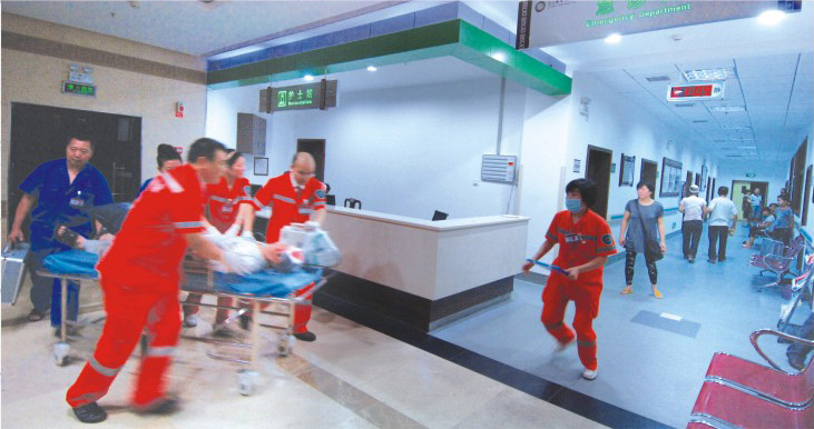 急診科為“120”一級(jí)急救站,圖為傷員搶救中